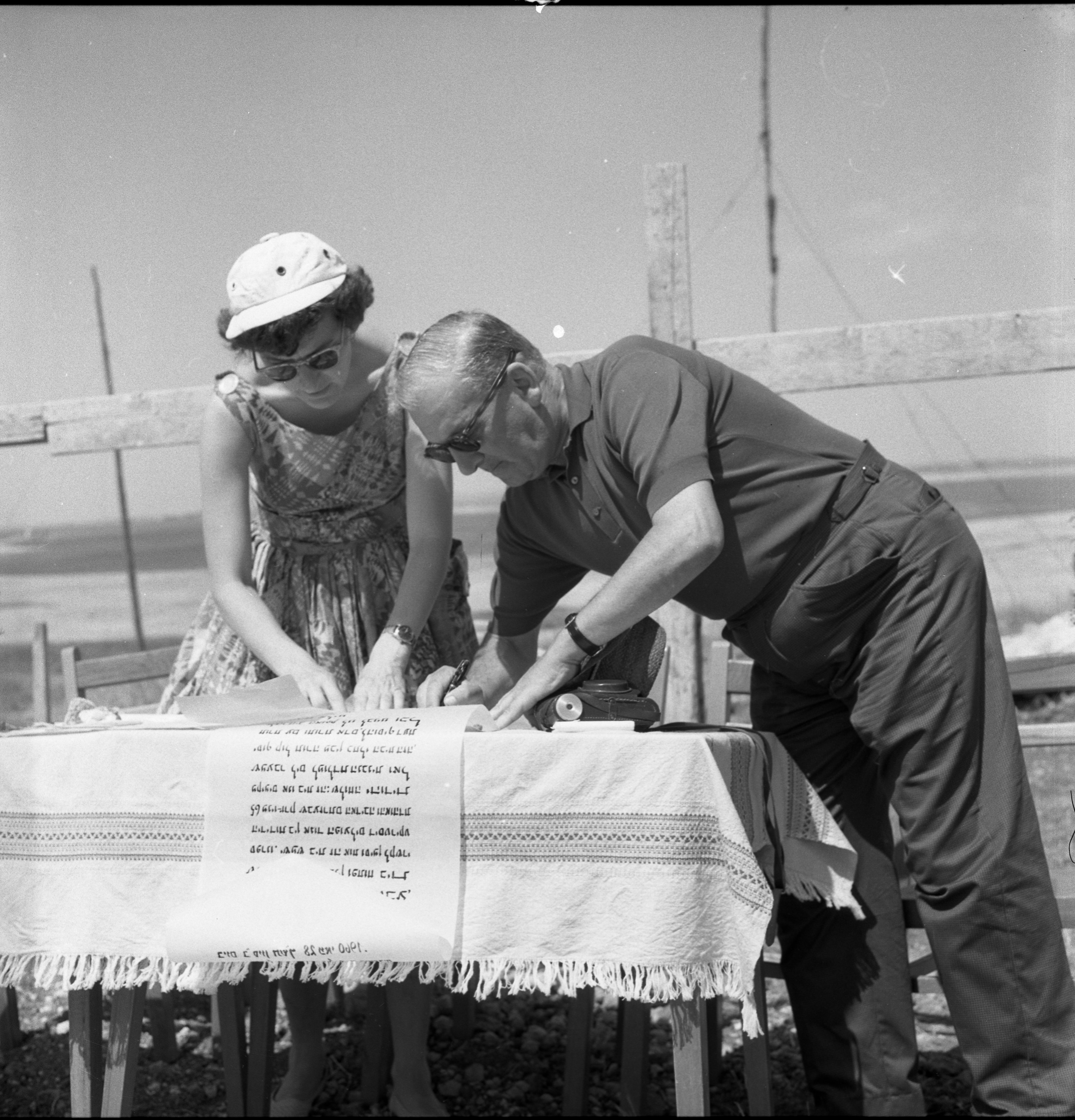אילנה אליאב עם תורם. טקס הנחת אבן פינה לבית מעבדה